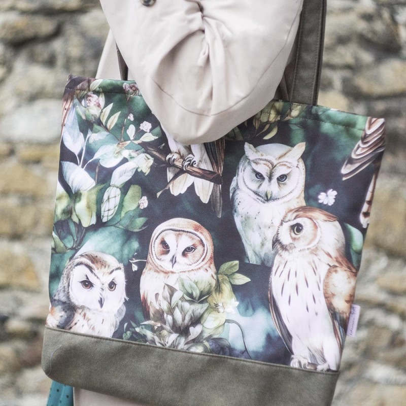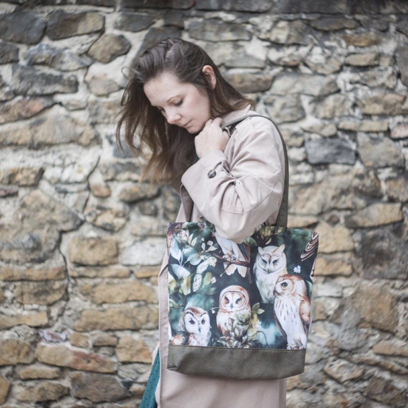 Torba uszyta z wodoodpornej tkaniny z nadrukiem cyfrowym i imitacji zamszu. W środku podszewka z kieszonką na suwak. Torba zapinana na zamek błyskawiczny.