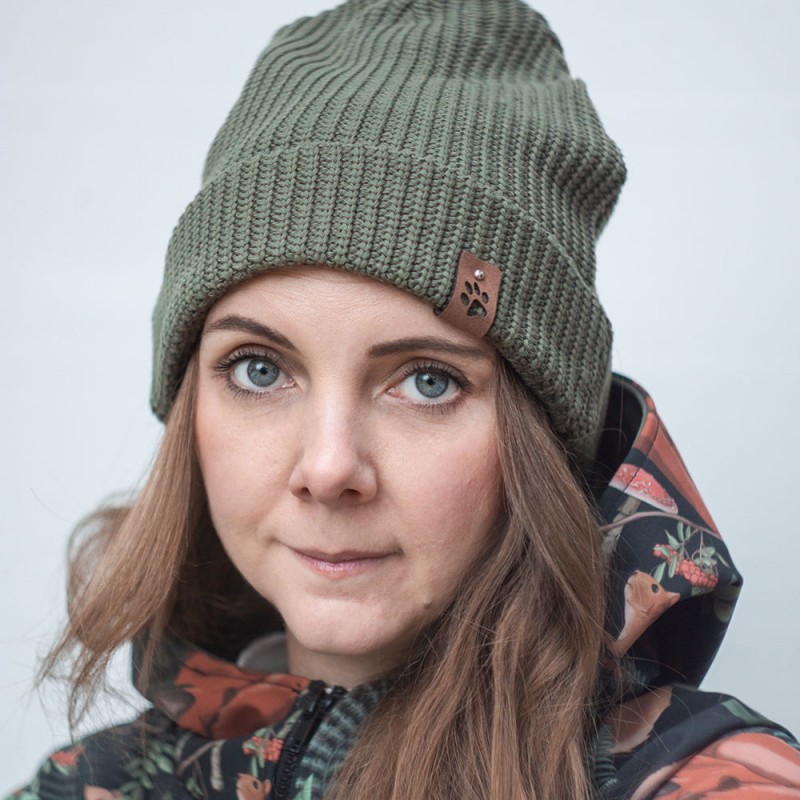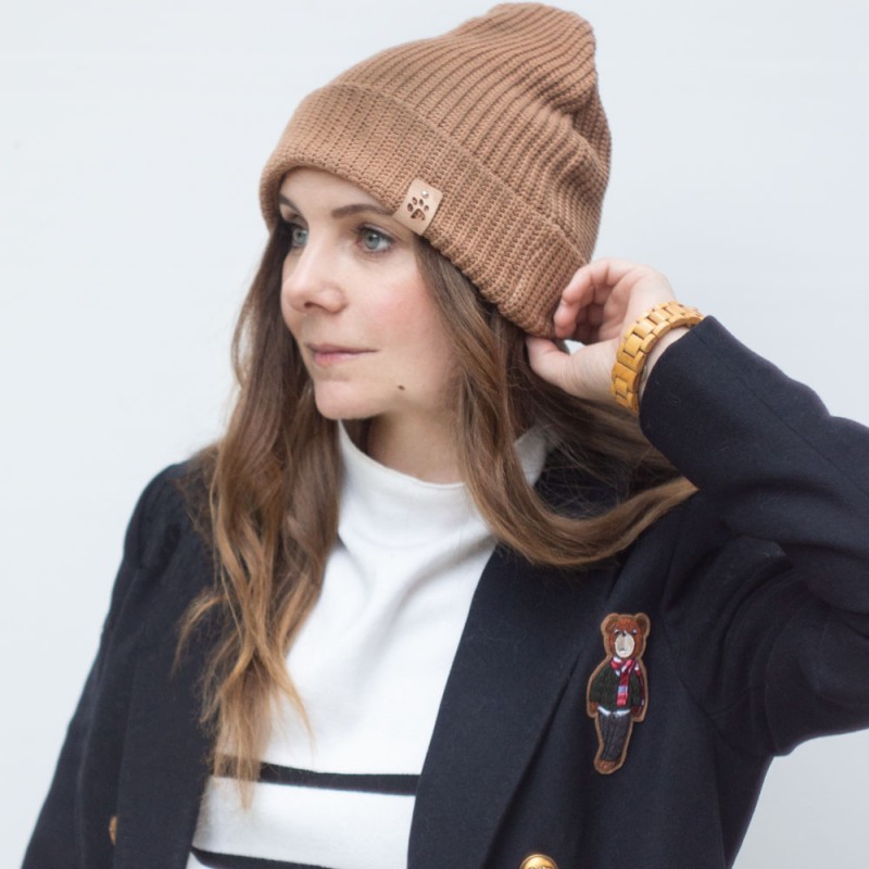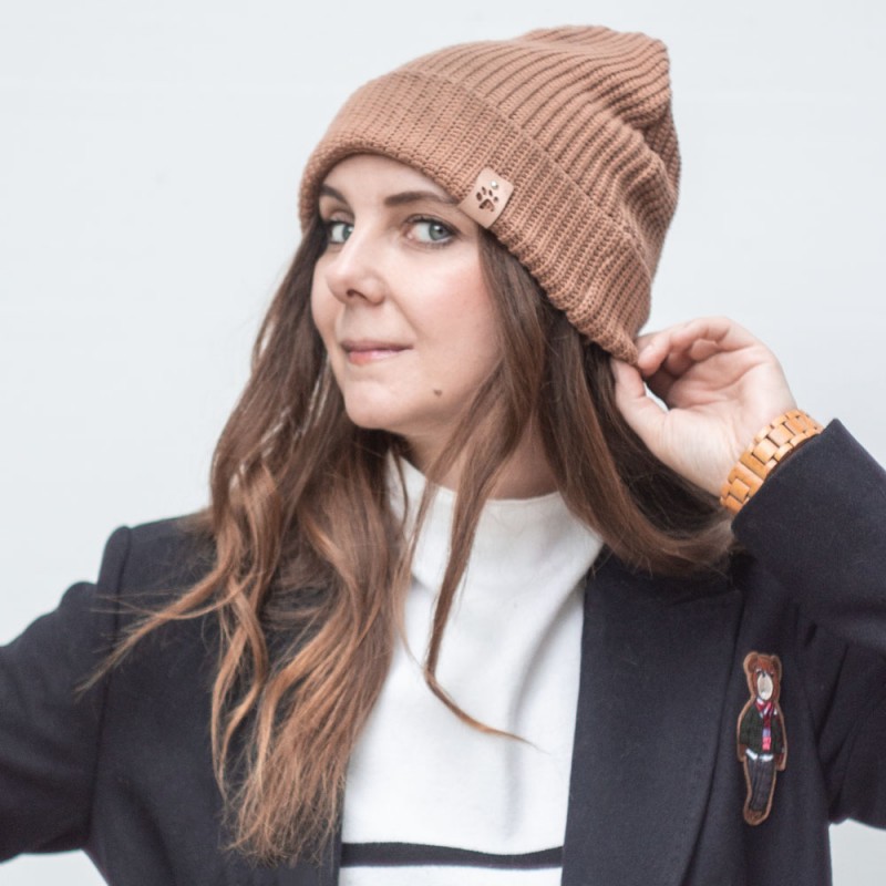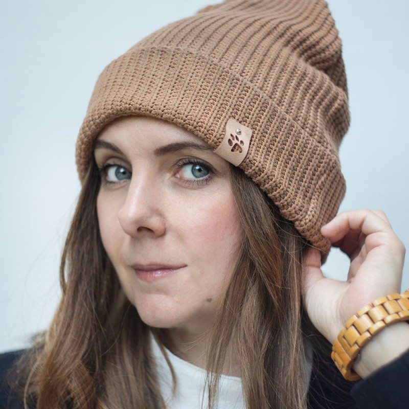 Czapka uszyta z dzianiny swetrowej o grubym splocie w dwóch kolorach do wyboru.
