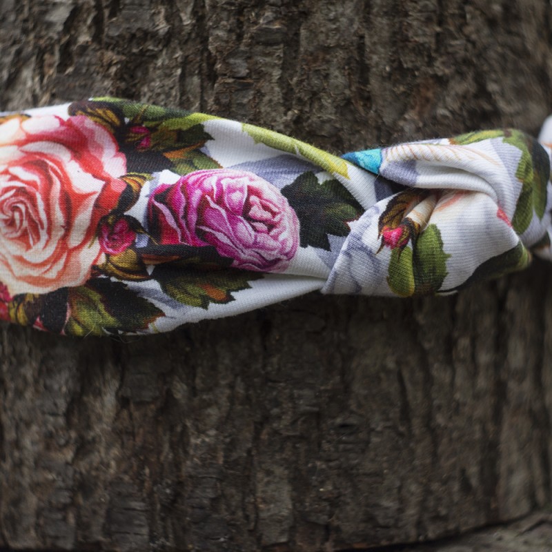 Miękka opaska do włosów uszyta z dzianiny bawełnianej. Idealna na co dzień, ale także przydatna podczas aplikacji kosmetyków, czy innych prac, które wymagają podtrzymania włosów.