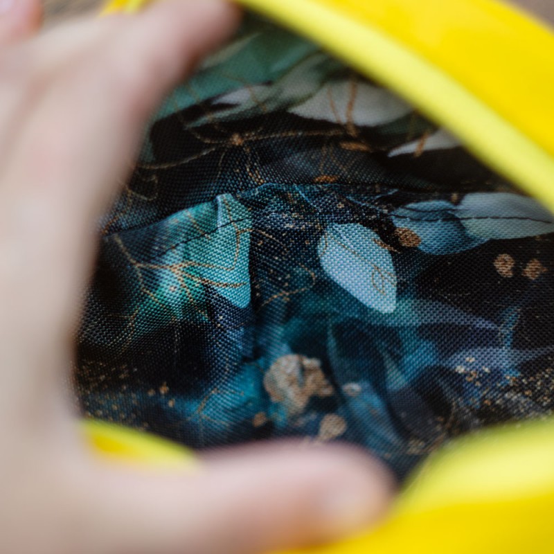 Torebka uszyta z imitacji skóry w bardzo intensywnym kolorze ;-) W środku leśna podszewka z kieszonką. Pasek regulowany.